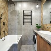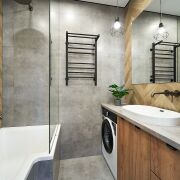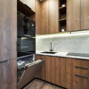 В квартире установлена  качественная европейская сантехника и европейская бытовая техника Bocsh:  встроенный холодильник, варочная поверхность, духовой шкаф, вытяжка, посудомойка, микроволновая печь, стиральная машина, проточный водонагреватель, дизайнерские радиаторы , встроенные смесители, два кондиционера и многое другое.