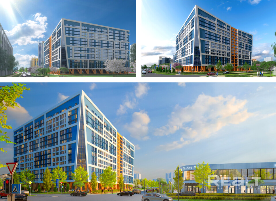 Дизайнерское решение фасадов в сочетании с запоминающимся силуэтным решением застройки будет впечатлять с различных точек прилегающей местности и города.