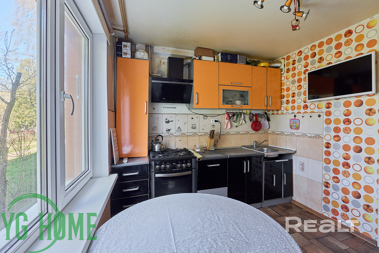 Окна квартиры выходят на тихую дворовую территорию.