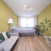 Данная квартира отличный выбор для молодых и семейных пар, для комфортной и уютной жизни. Дом расположен внутри тихого двора, вдали от шумных магистралей, она предлагает атмосферу спокойствия и уединения.