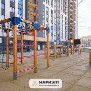 • Благоустроенный двор: Двор оснащен детскими и спортивными площадками, велобоксом,