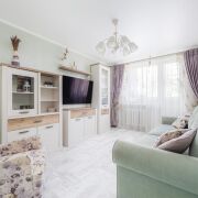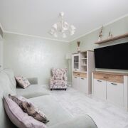 -Евроремонт – качество, готовое к проживанию. На полу уложен практичный ламинат в жилых зонах и керамическая плитка в мокрых зонах, обеспечивая долговечность и лёгкость уборки. Окна из ПВХ с современными стеклопакетами защищают от холода, шума и сквозняков. Стены окрашены в светлые, воздушные тона, визуально расширяя пространство и создавая атмосферу свежести. Все отделочные материалы качественны и долговечны, что означает, что квартира сохранит свой облик долгие годы.