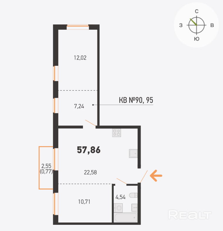 57.86 м²