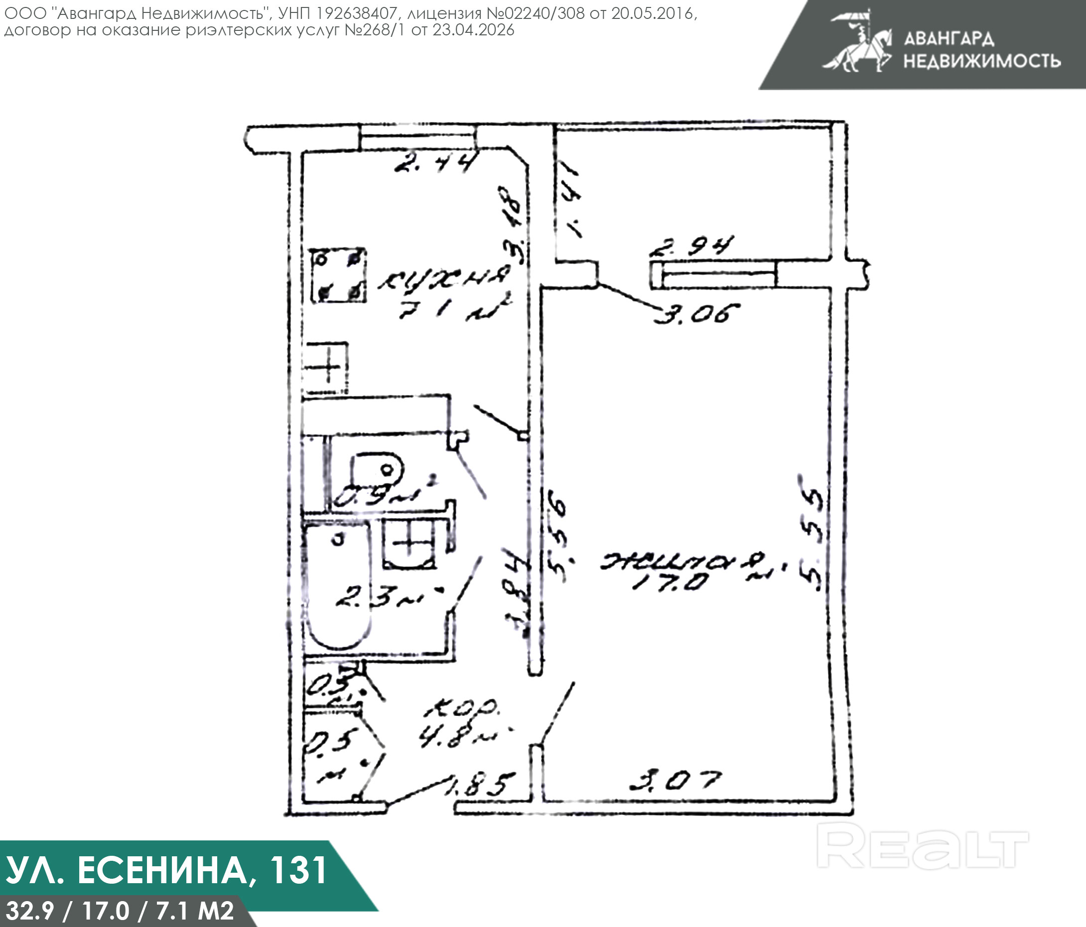 Купить 1-комнатную квартиру в Минске, ул. Есенина, 131