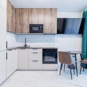 - Встроенная кухня оборудована современной техникой: электрическая варочная панель, вытяжка, встроенный духовой шкаф и микроволновая печь, встроенный холодильник! Качественная мебель, которая остается в собственности покупателя. Удобное рабочее пространство позволяет готовить с комфортом.