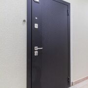 - Входная дверь металлическая с хорошей защитой, а также зеркалом, которое увеличивает пространство квартиры и дает возможность осмотреться перед выходом.