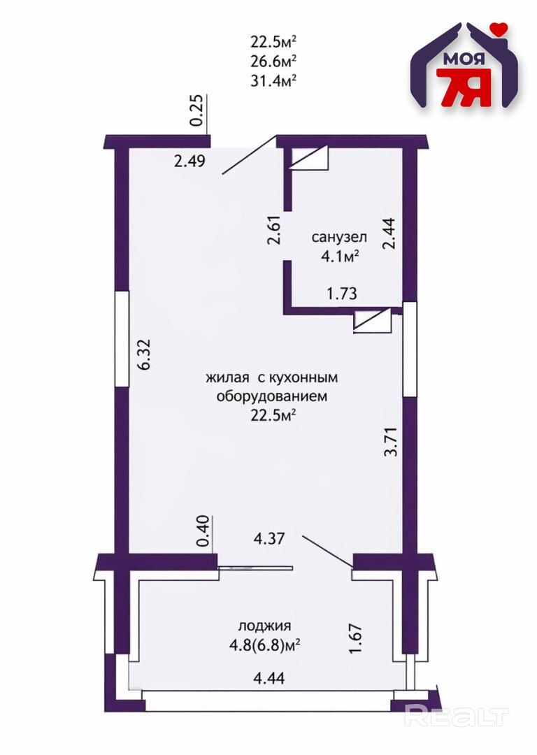 - Уютная однокомнатная квартира-студия, площадью 31,4 м2, расположена на 6 этаже из 13. Дом малоэтажный!
