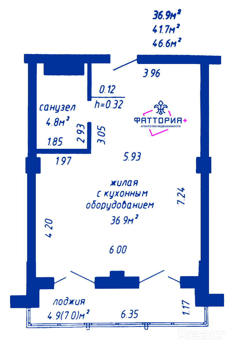 36.9 м²
