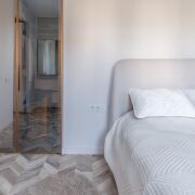 Пространство зонировано - выделена комната под спальню с гардеробом.