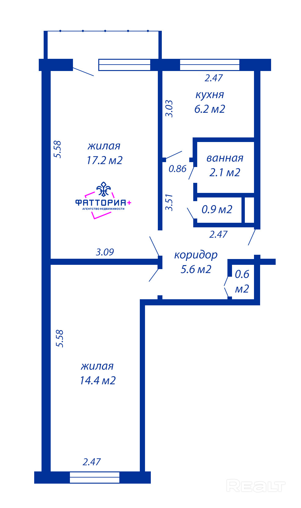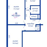 Общая - 47,0 м2 /жилая- 31,6 м2 / кухня - 6,2 м2