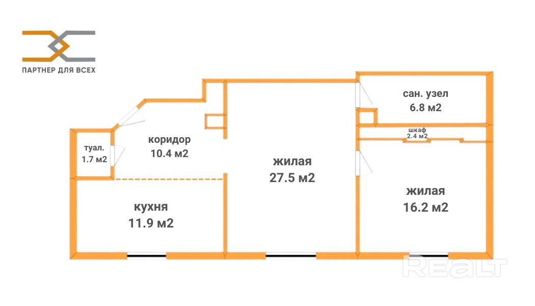 ООО «Партнер для всех», УНП 690665135, лицензия Министерства юстиции Республики Беларусь № 02240/321 от 02.12.2016, договор на оказание риэлтерских услуг № 59/7 от 23.04.2026г