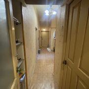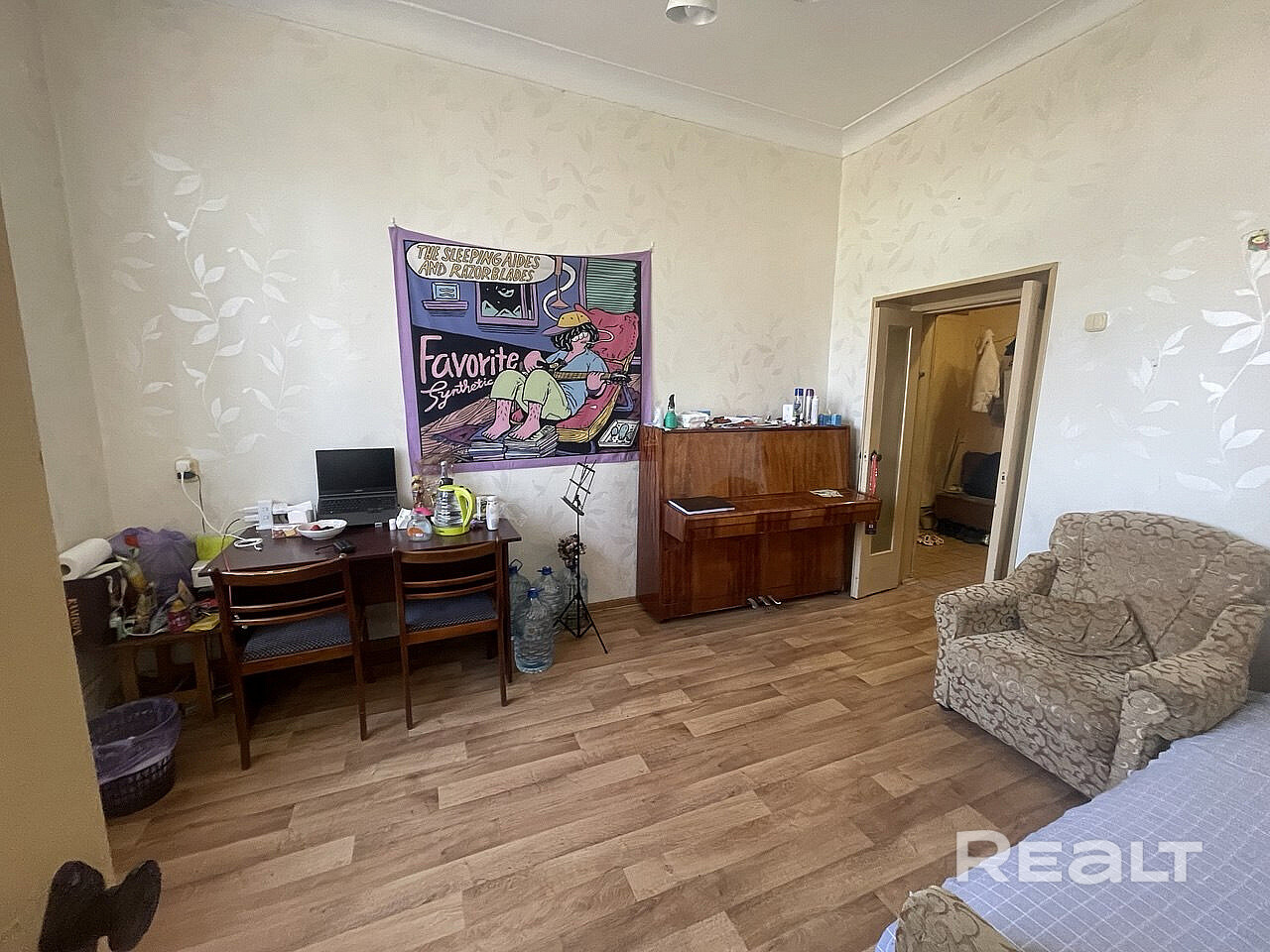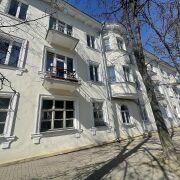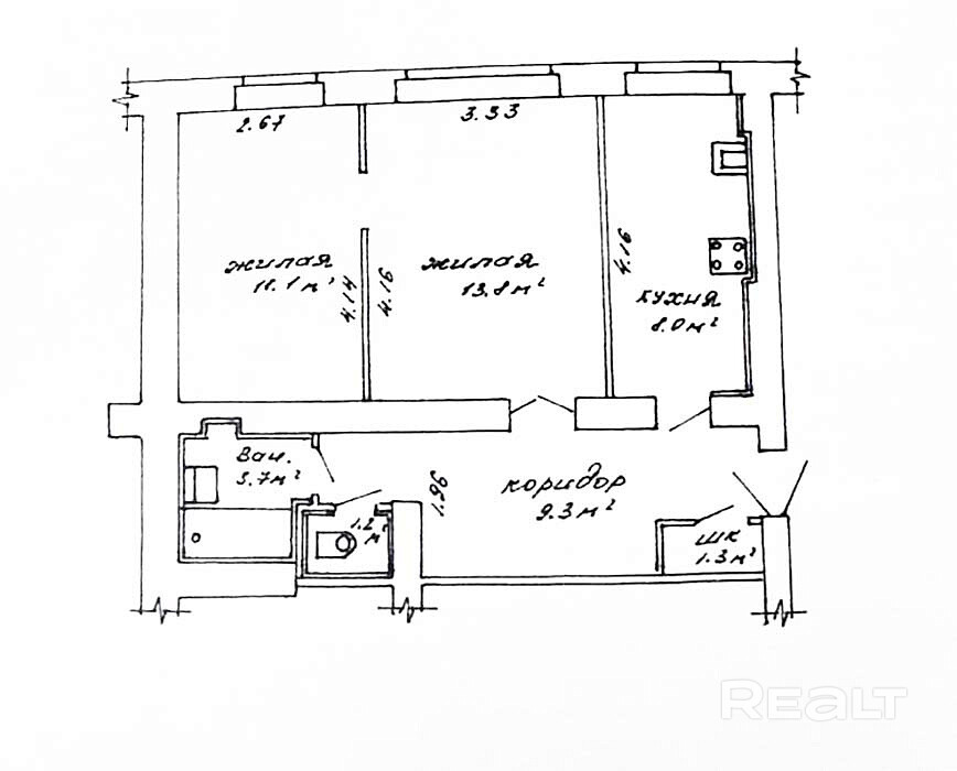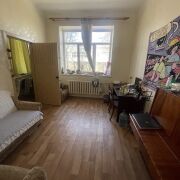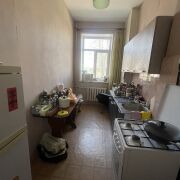 Потолки высотой 3 метра, большая кухня (8 кв. м). Одна комната изолированная, вторая проходная. Санузел раздельный, счётчики на всё. На полу доска и линолеум, окна ПВХ, стены и потолки выровнены.