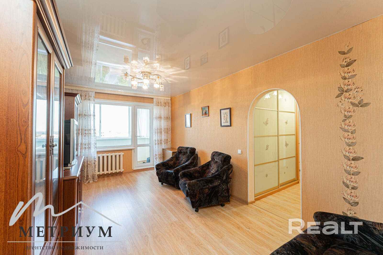 Квартира полностью готова к проживанию, сделан ремонт: на полу ламинат, в раздельном санузле плитка, в жилых комнатах и на коридоре натяжные потолки, а также установлены стеклопакеты. При продаже остаётся вся мебель и техника.