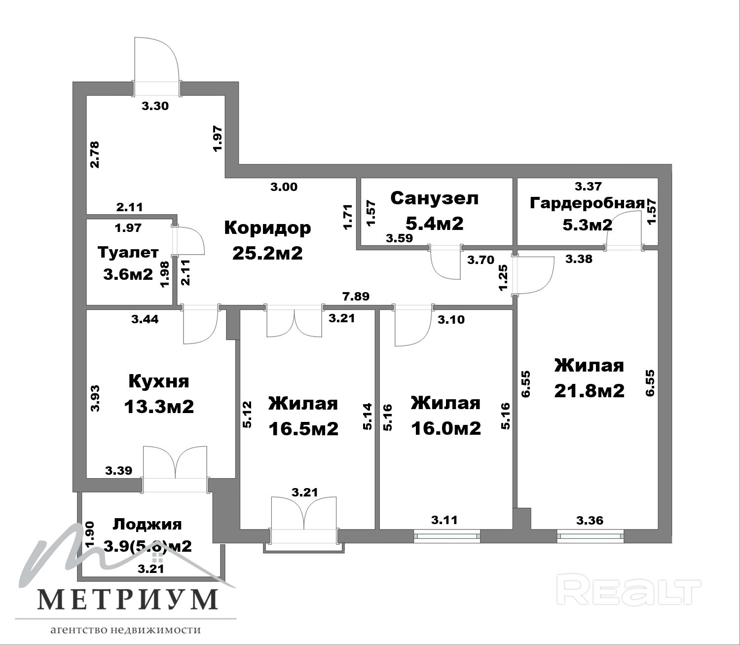 - Три раздельные комнаты 16.5 / 16.0 / 21.8 м.кв.
