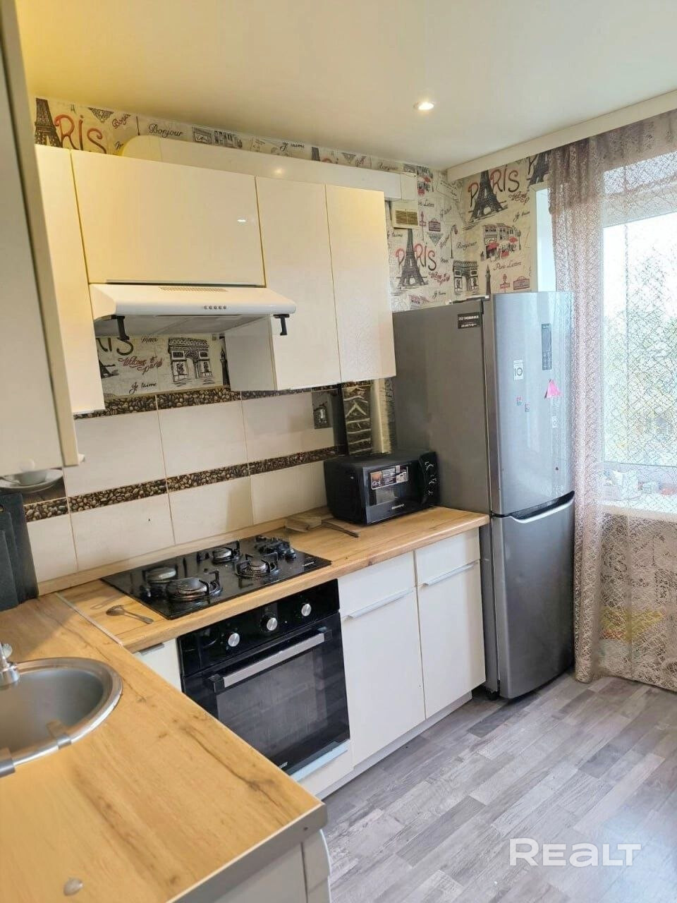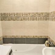 • Натяжные потолки, на полу – практичный ламинат, санузлы полностью облицованы плиткой.