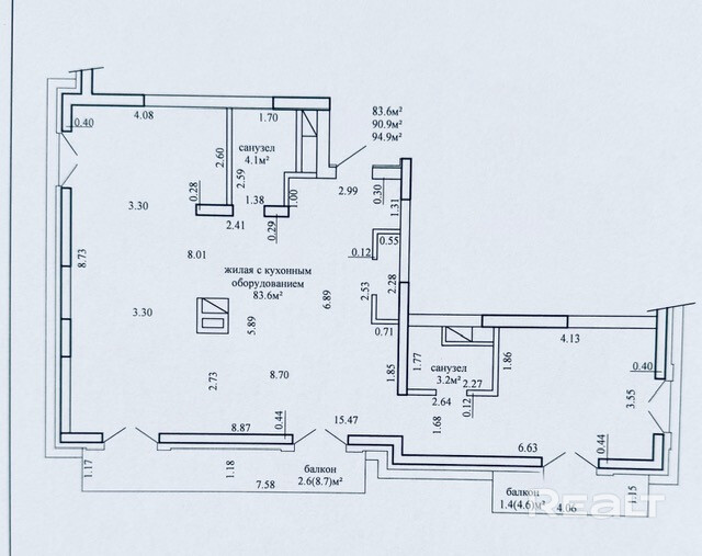 94.9 м²