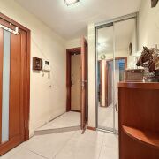 - коридор  4,3 кв.м., есть встроенный шкаф, комод, на полу плитка;