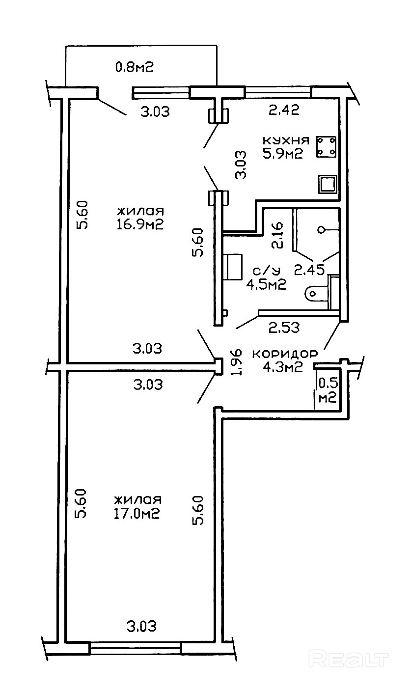 Площадь квартиры по СНБ - 49,9 кв.м., общая площадь - 49,1 кв.м., жилая плошадь - 33,9 кв.м., кухня - 5,9 кв.м., имеется балкон.