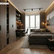 — панорамное остекление во всю стену — много естественного света и ощущение пространства