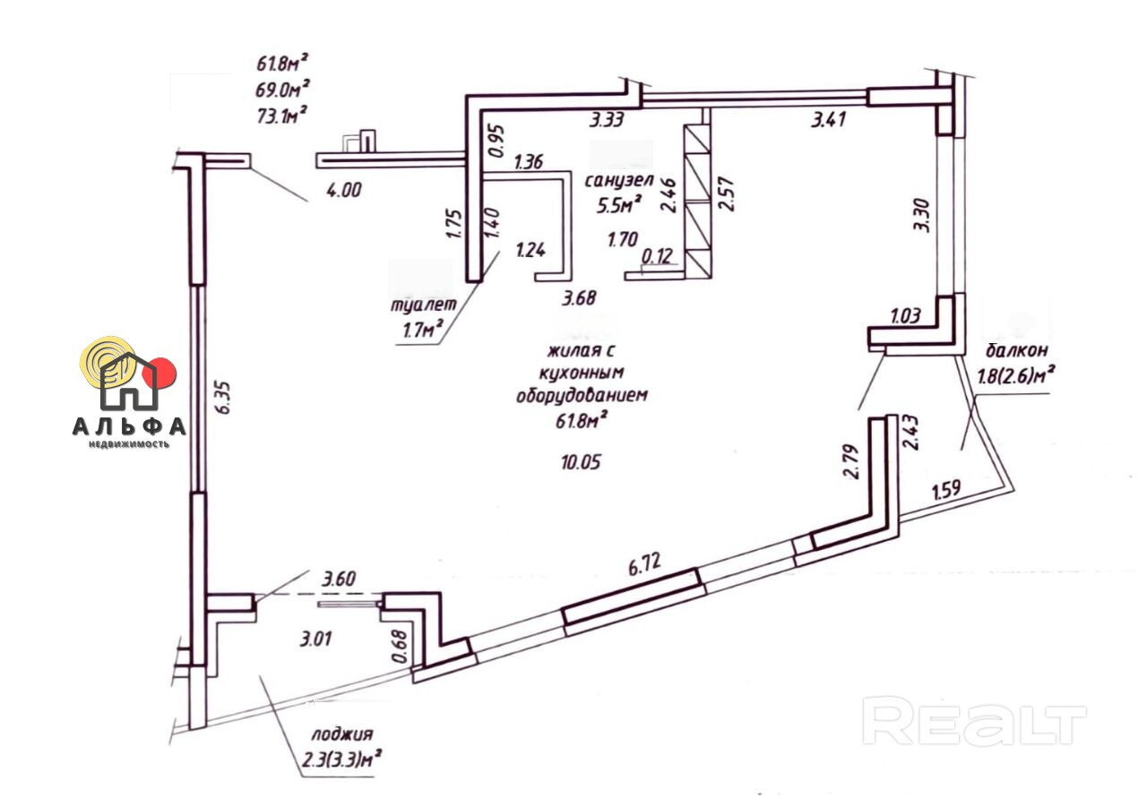 61.8 м²