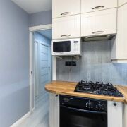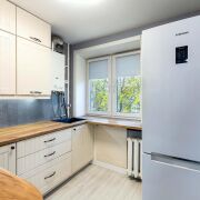 - Кухня компактная, но очень продуманная - удобно организовано пространство для готовки и хранения.
