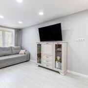 - Качественный ремонт: В квартире модернизирована электрика, заменены трубы и сантехника. На полу сделана стяжка и пол укрыт качественным ламинатом. Санузел облицован плиткой. Во всей квартире гипсовые потолки с точечными светильниками и раздельными зонами освещения.