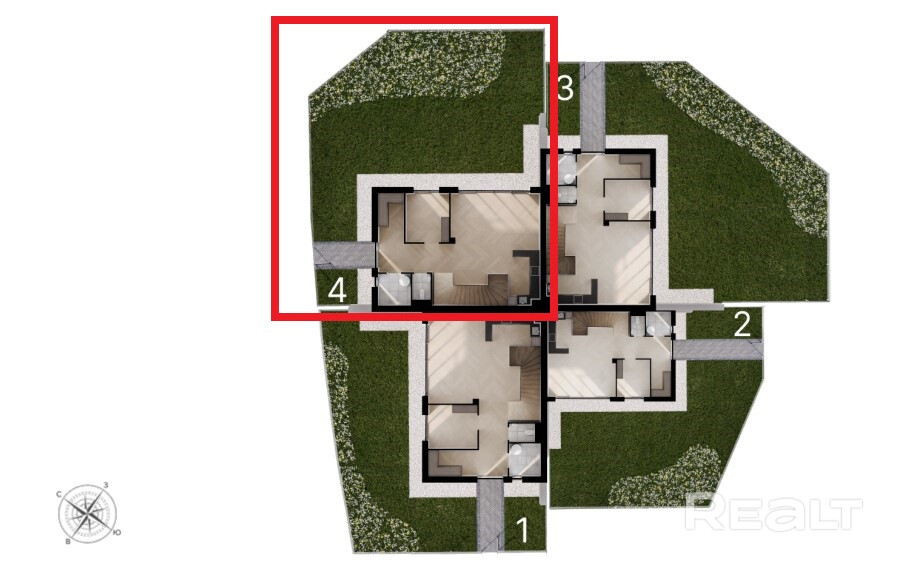 Благоустроенный участок для каждой квартиры от 121 до 209 м2.