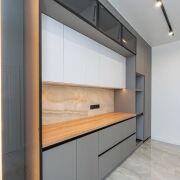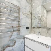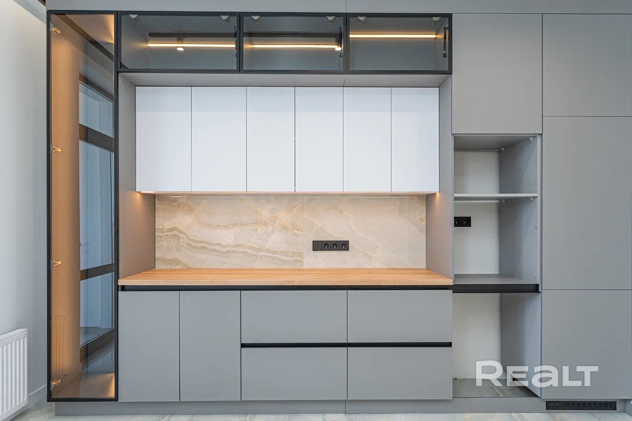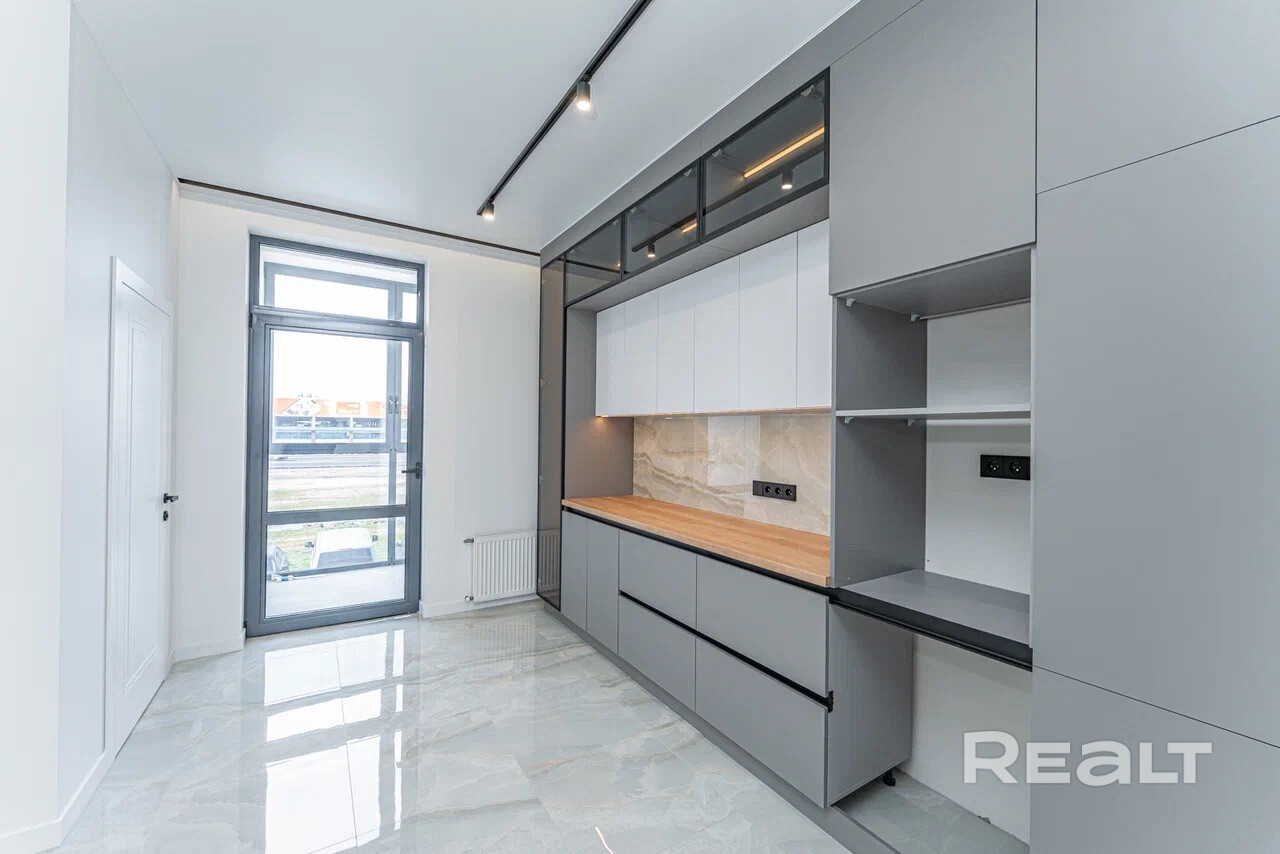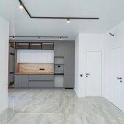 В квартире выполнена качественная дизайнерская отделка в светлых тонах, стены окрашены, на полу - керамогранит, а в жилой комнате – ламинат. Установлена встроенная кухня. Предусмотрены выводы для установки видеодомофона.