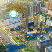 Зеленая парковая зона, международный финансовый центр и крупнейший торговый центр Авиа Молл в центре комплекса.