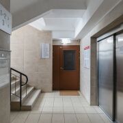 Ухоженный подъезд с видеонаблюдением, стоянка у дома.