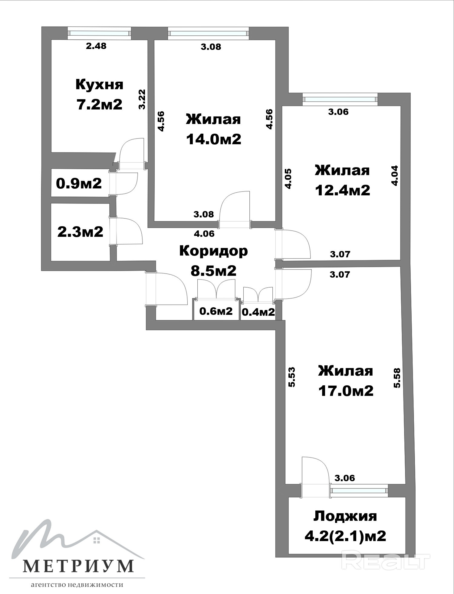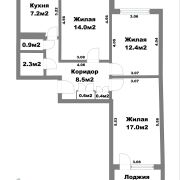 Стандартная планировка: кухня 7,2 кв.м., 3 раздельные комнаты, большая застекленная лоджия.