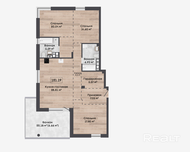 Террасы-балконы в каждой квартире от 19 до 24 м2