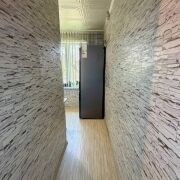 - Квартира готова к проживанию с момента покупки. На полах уложен практичный ламинат, натяжные потолки в жилых комнатах и коридоре создают гладкую, чистую поверхность.