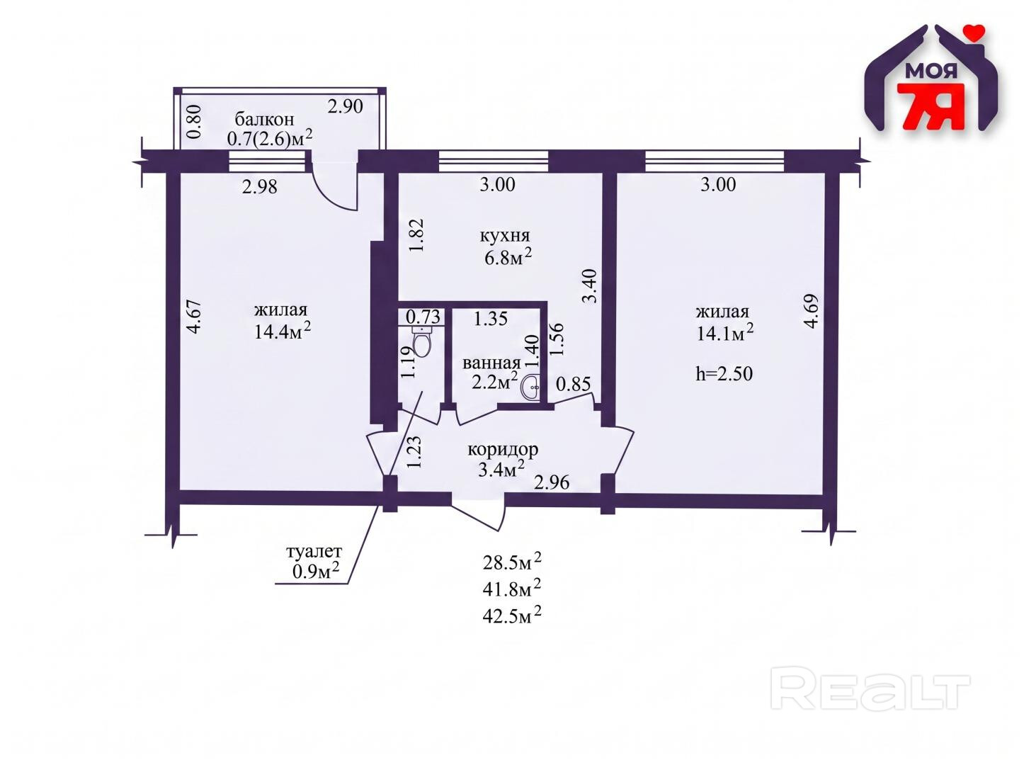 -Квартира площадью 41,8 м2 (жилая 28,5 м2) расположена на третьем этаже – наиболее комфортном уровне, обеспечивающем естественное освещение.