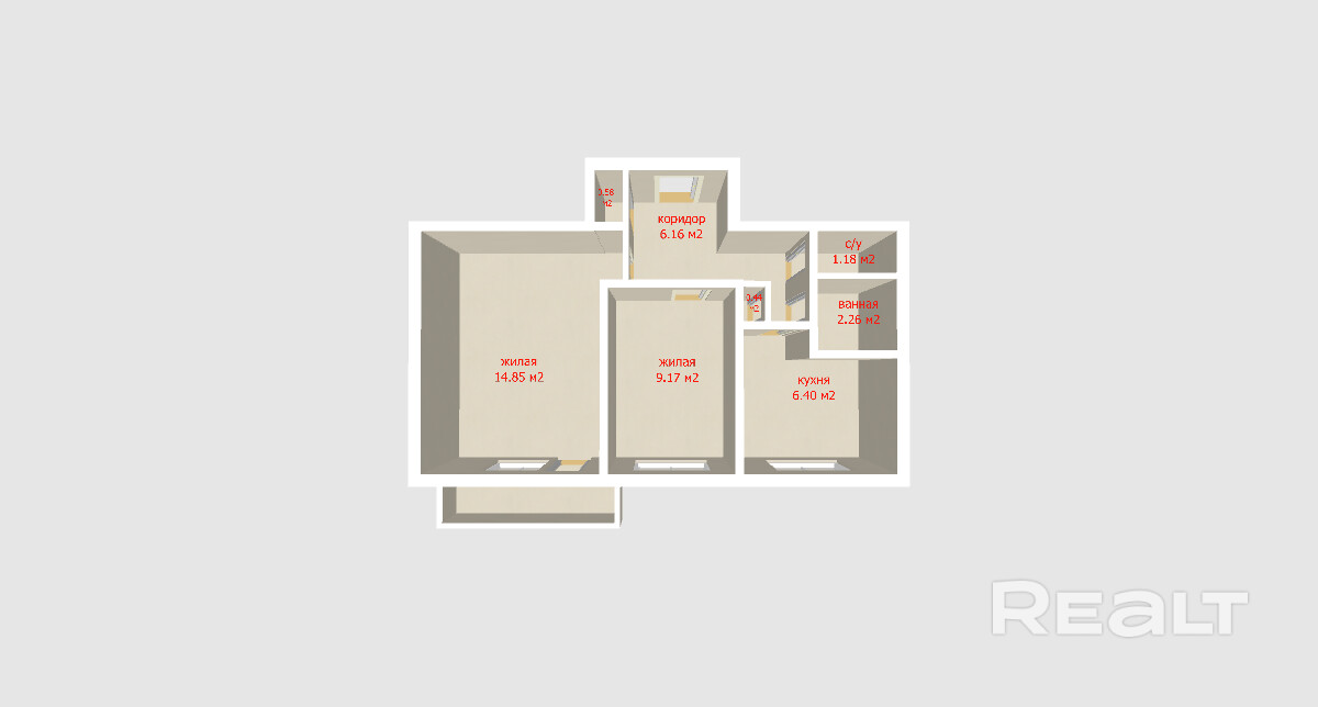 ·  Планировка: Идеально подходит для комфортной жизни. Две изолированные комнаты (14,85 м2 и 9,17 м2) , раздельный санузел ,  практичные ниши позволяют организовать вместительные встроенные шкафы, освобождая пространство.