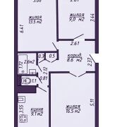 -Общая площадь по СНБ 64,5 кв.м., жилая - 39 кв.м.