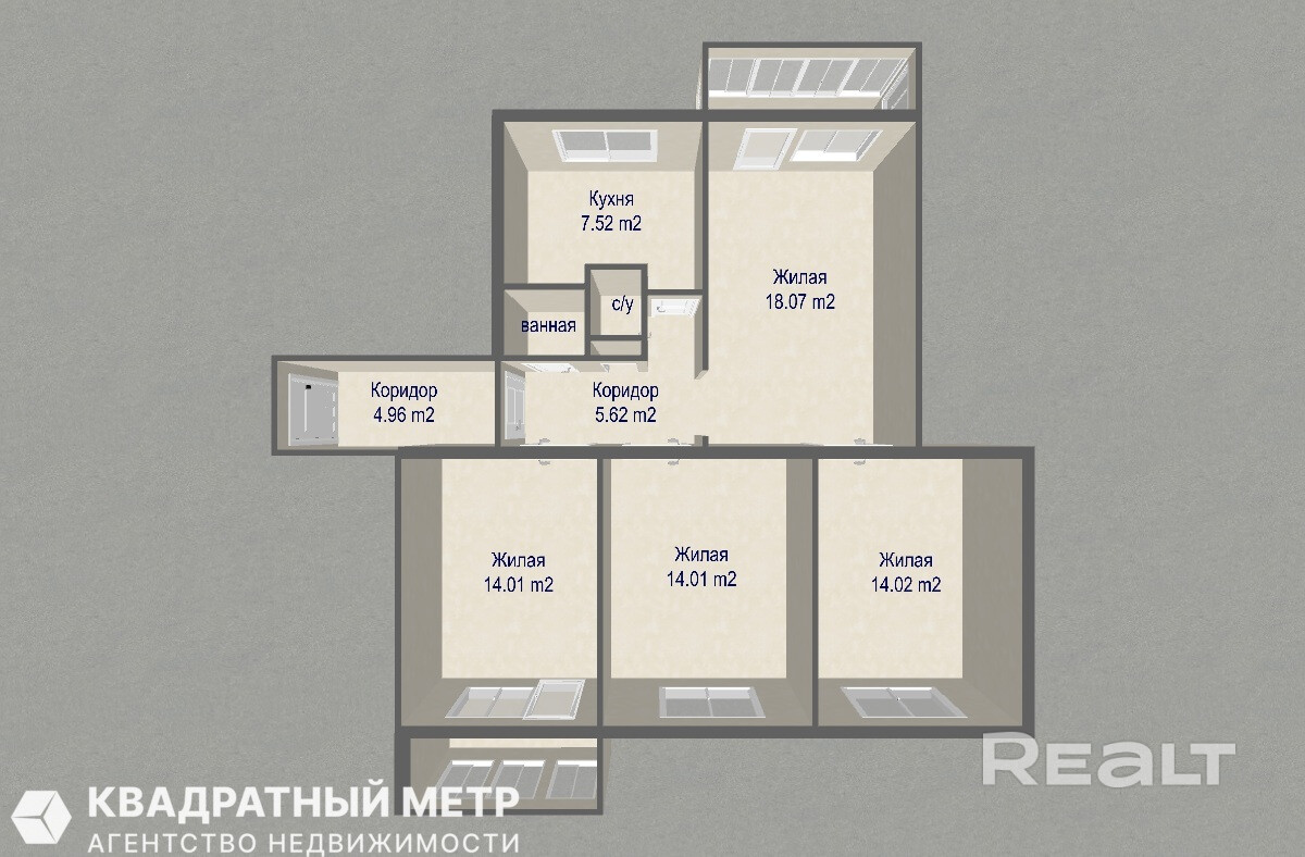 Продается 4 –комнатная квартира в Фрунзенском районе, в тихом и зеленом центре микрорайона. Площадь: 81.82 м² — максимум пространства!