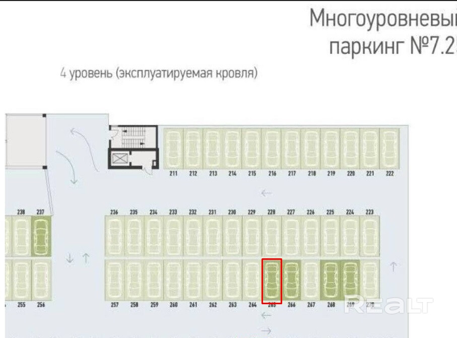 Машиноместо на верхнем уровне паркинга 7.25 по адресу Авиационна 43