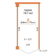 Гараж площадью 18.7 кв.м. располагается на первом этаже. Высота потолка 2.77 м.