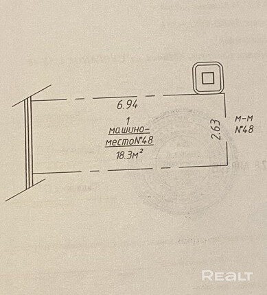 Машиноместо в подземном паркинге по адресу Сурганова 5Б, место 48, второе от въезда
