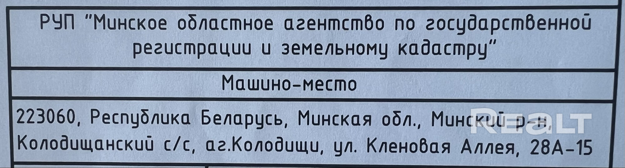Купить машиноместо, аг. Колодищи, ул. Кленовая Аллея, 28/А (Минский р-н, Минская область)