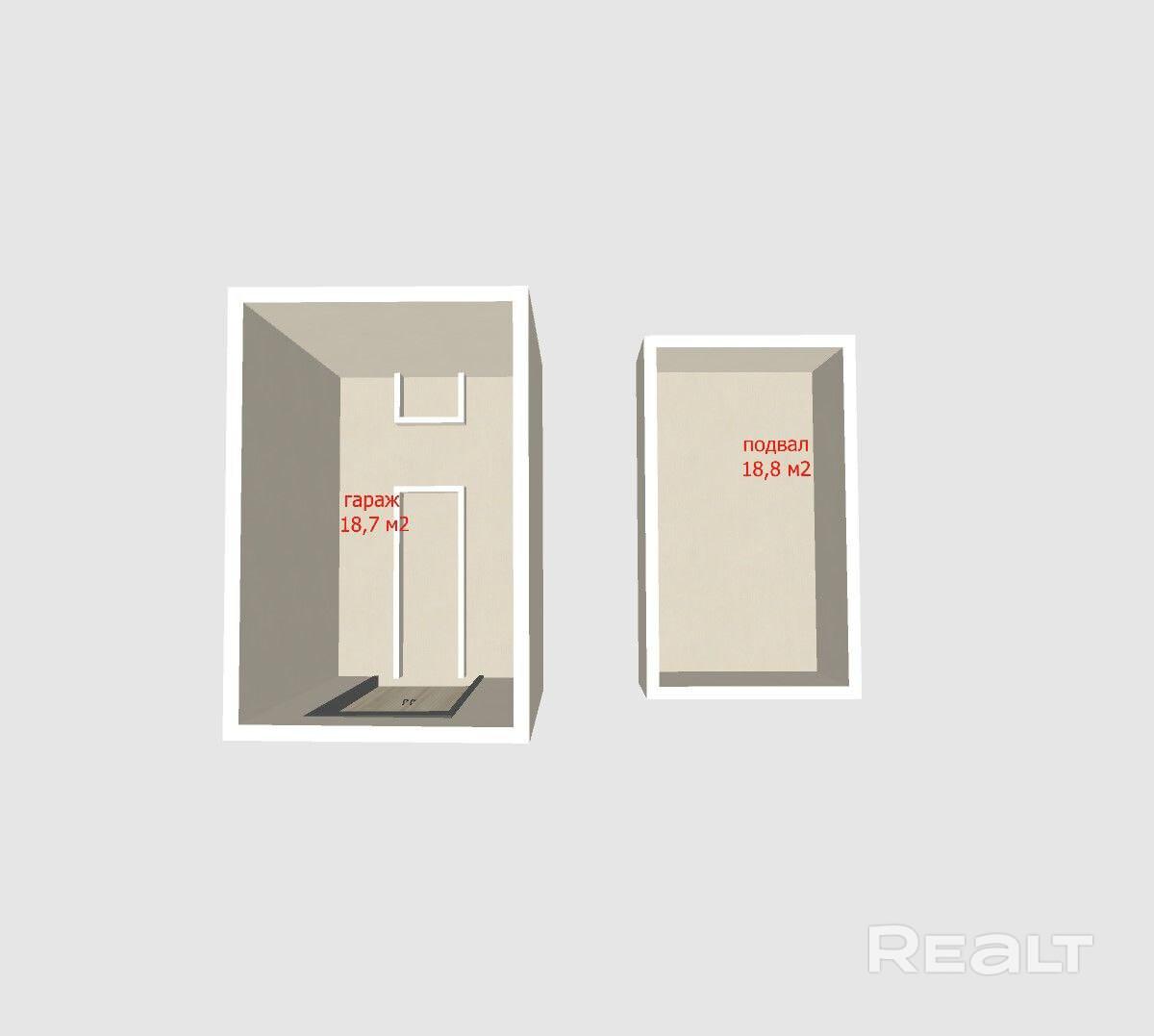 18.8 м2 наверху + 18.7 м2 в подвале = 37.5 квадратов полезной площади!