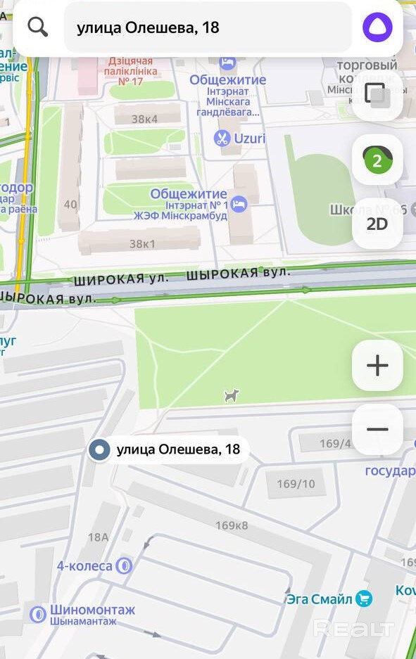 Продается гараж площадью 18,7 м2 по адресу: г. Минск, ул. Олешева 18. (в массиве №1, рядом расположен шиномонтаж, сто «Автоидея», ул. Широкая - это Зеленый луг).