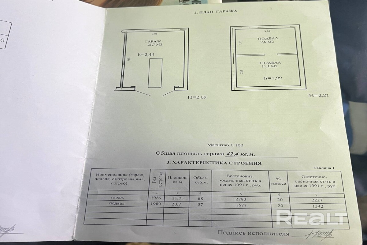 Площадь: общая 42.4 м22(гараж 21.7м2 и подвал 20.7м2)