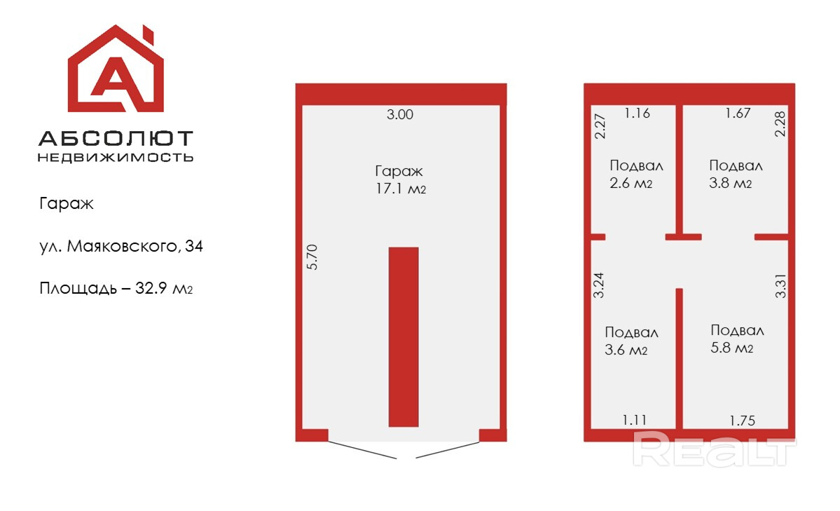 Гараж 32,9 м.кв - 2 уровня.