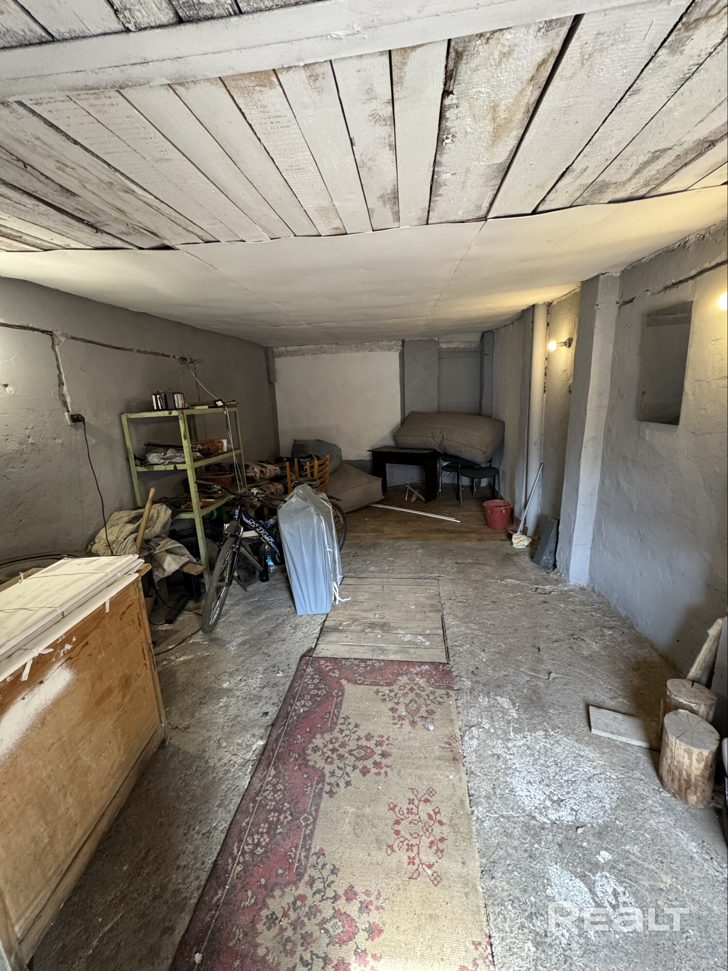 Просторный гараж, может стать до 2-х машин, есть погреб и яма, сделан косметический ремонт, покрашены стены влагостойкой краской и зашит часть потолка. На фото не прибрано, большинство заберется при продаже. На второй половине лежит хороший новый ламинат, был постелен в 2023 году, необходимо просто помыть пол.