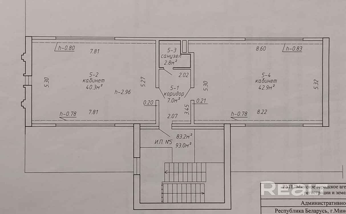 Помещение состоит из 2 кабинетов , большого коридора и санузел.
