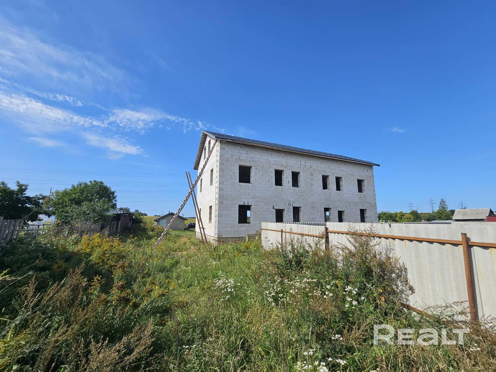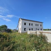 На участке незавершенное законсервированное капитальное строение. Трехэтажный дом построен из газосиликатных блоков 400 мм толщиной. Фундамент из блоков ФБС, установленные на армированный железобетонный пояс. 9-метровые плиты перекрытия между 2 и 3 этажами. Крыша - качественная металлочерепица 2023 г. производства. Высота потолков - 3.15 м. Помещения свободной планировки.