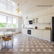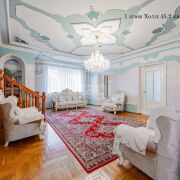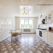 - Первый и второй этажи: высококачественный паркет, лепнина из гипса на стенах и потолках. Кухня оснащена практичным ламинатом, новой встроенной кухонной мебелью и техникой.