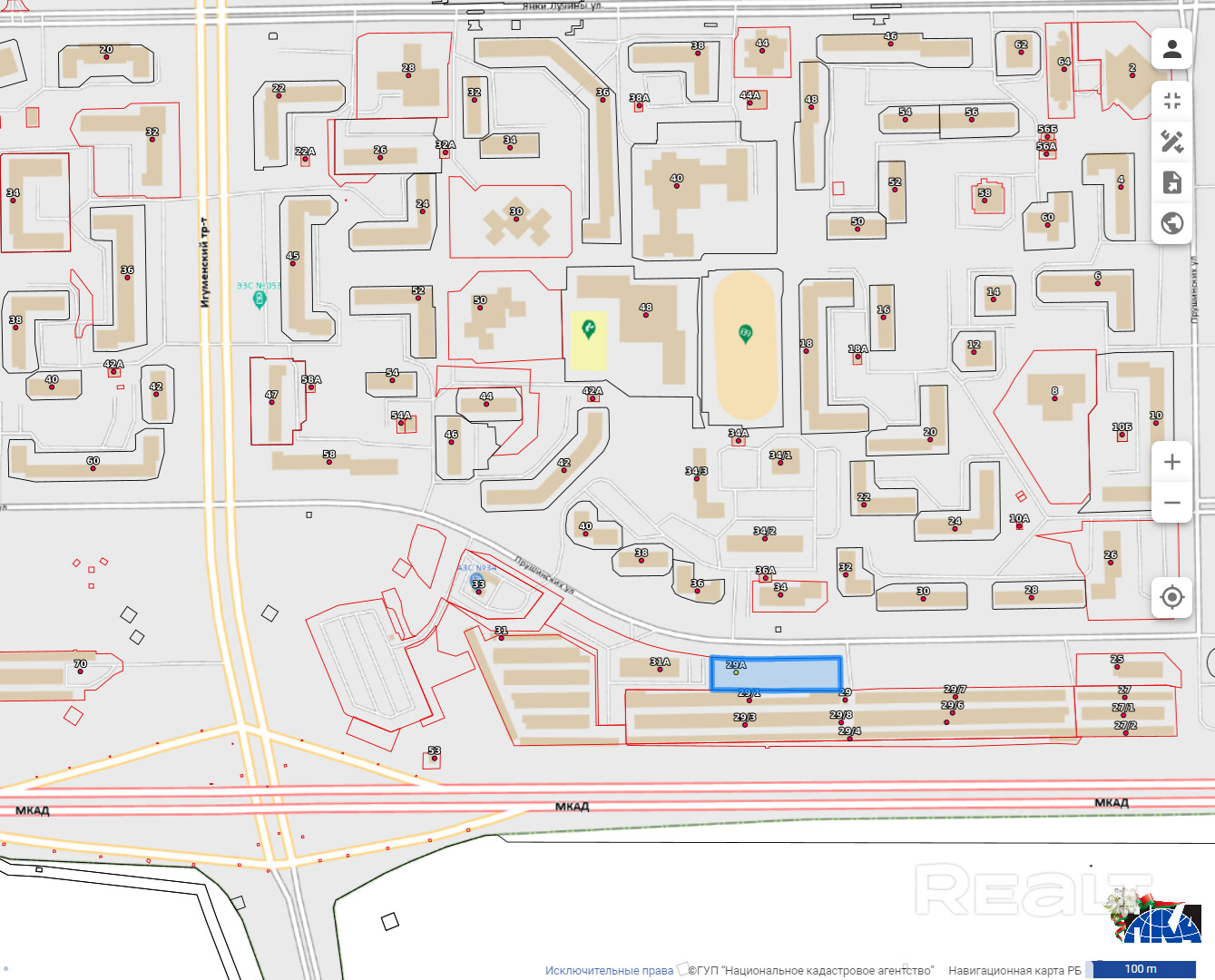 Предусмотрено строительство парковки на 62 машиномест + 2 зарядные станции для электромобилей. В пешей доступности расположена диспетчерская станция Лошица-2, в непосредственной близости – выезд на Игуменский тракт и Минскую кольцевую автодорогу.